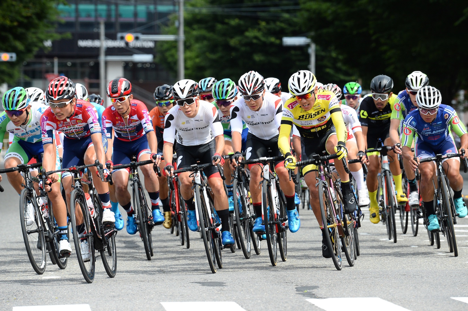 JR那須塩原駅前で行われたこのクリテリウムは、総距離が短くコースも単調。ゴールスプリントを狙うスプリンターたちが的確な位置取りのためにレース前方で展開していきました。