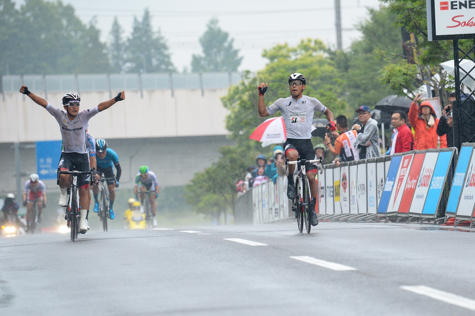 2019年6月9日、栃木県矢板市での《Jプロツアー》第8戦にて、TEAM BRIDGESTONE Cycling今村駿介が勝利し、窪木一茂が2位となりました。ひと月前の宇都宮でのワンツー勝利と同じ順位、同じ構図でのチーム勝利となりました。