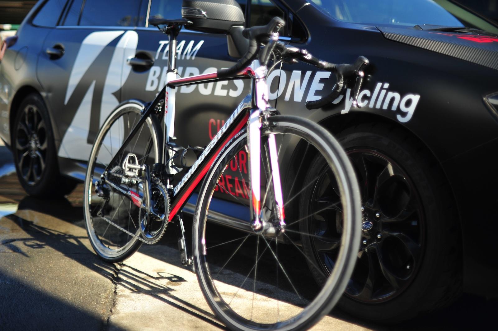 TEAM BRIDGESTONE Cyclingはロードバイクに、シマノの最高級ロードレース用コンポーネンツ、デュラエースを装備し走ります。コンポーネンツとは、走りの核となる駆動と変速を受け持つドライブトレイン、ホイール、ブレーキをまとめた総称です。