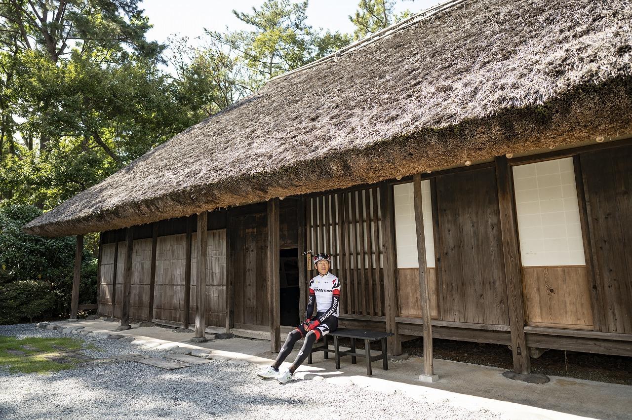 「中に入ることができる茅葺きの旧植松家住宅中は、冬は暖かくて、夏は涼しいので、ライド途中のひと休みにぴったり。少し園内を歩かないといけませんが、五竜の滝と吊橋は写真映えするスポットなので、仲間と写真を撮り合ってみるのはいかがでしょうか。観光協会横にサイクルラックが設置されています」(徳田)